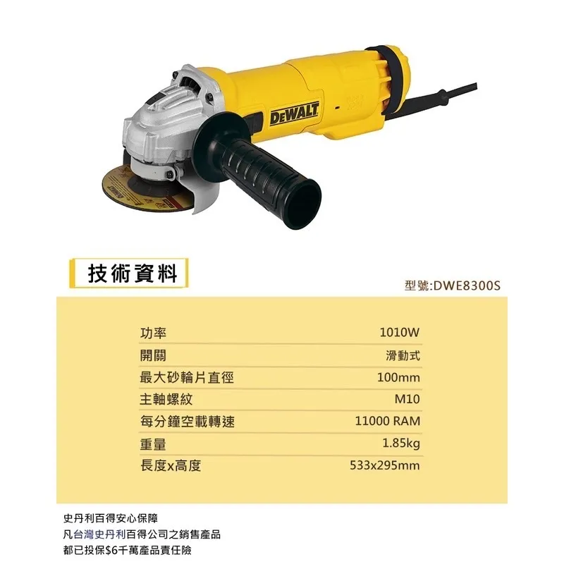 DWE8300S 1010W 4英吋砂輪機 (滑動式)
